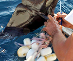 Riesiges Glück im Unglück hatte ein Delfin am vergangenen Pfingstsonntag. Er hatte sich mit der Schwanzflosse in einem Seil verheddert, das zur Befestigung eines Plastikkanisters diente. Auf diese Weise markieren Fischer häufig die Positionen ihrer Netze und Reusen.