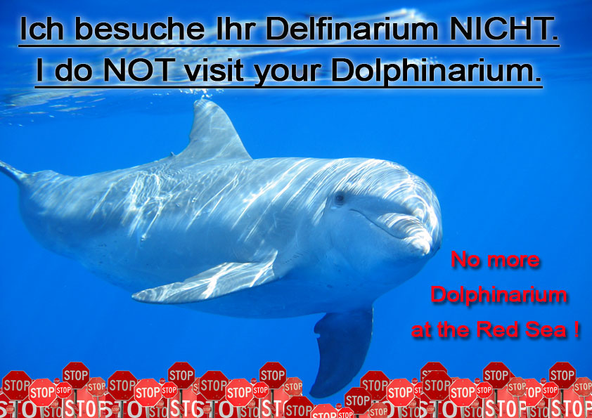 Mac von den Red-Sea-Partners schreibt zu der von ihm initiierten Aktion: „Die letzten knapp 25 Jahre ( seit dem wir in HRG sind ) ging es auch ohne Delfinarium mit den Touristenzahlen nach oben. Heute eins in Hurghada, nächstes Jahr dann in Safaga und dann so weiter im Süden… überall ein Delfinarium!! Wir müssen das ALLE zusammen verhindern, damit die zum ‚Affen gemachten Delfine‘ kein profitables Geschäft werden für manche ‚Delfinbesitzer‘ mit viel Geld. Delfine kann man nicht besitzen und schon gar nicht unter diesen Umständen in Ägypten!!!“