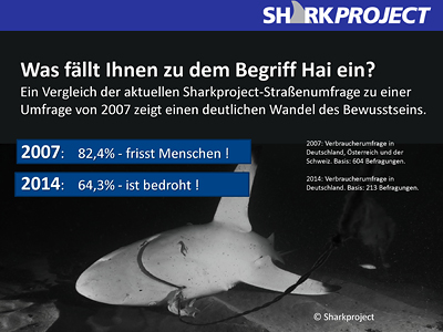In sieben Jahren haben Haie in der Wahrnehmung einen deutlichen Imagewechsel erfahren. „Dies ist eine direkte Folge unserer intensiven und stringenten Aufklärungsarbeit“, so der Präsident von SHARKPROJECT International, Gerhard Wegner. „Besonders erfreulich ist, das unter Kindern und Jugendlichen mit 83,7% der Anteil derer, die um die Bedrohung für den Hai wissen, genau gegenläufig zur allgemeinen Meinung vor sieben Jahren ist. Die Generation »Der Weiße Hai« wird abgelöst.“