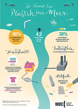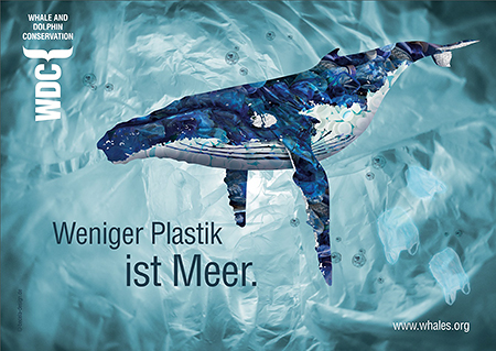 Jede Minute landet eine Tonne Plastik im Meer – eine lebensbedrohliche Gefahr für Wale und Delfine. Plastik ist im Meer nicht biologisch abbaubar, es zersetzt sich im Laufe der Jahre in immer kleinere Teile (Mikroplastik), die so noch leichter ins Nahrungsnetz gelangen. Die Wal- und Delfinschutzorganisation WDC hat deshalb eine Kampagne gestartet, um über Plastikmüll im Meer aufzuklären.