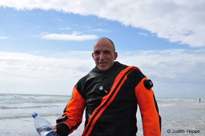 Die Aspekte, die dem souveränen Tauchprofi am meisten zu schaffen gemacht haben, waren wie erwartet die geringe Sichtweite, die beim Einstieg bei deutlich unter einem Meter lag sowie die Lärmbelästigung durch die Frachter und Tanker, die in der Schiffahrtsrinne über den Weltrekordler hinweggedonnert sind: „Wenn Du unter Wasser die eigene Hand nicht vor den Augen sehen kannst und dabei keine Sekunde die Konzentration verlieren darfst, ist das alleine schon extrem anstrengend. Wenn dann aber noch ein Geräuschpegel auf Dich einwirkt, als würde gerade ein Düsejet direkt neben Deinem Kopf landen oder starten, dann ist das eigentlich unerträglich. Von daher bin ich froh, dass der Tauchgang abgeschlossen ist. Dass die hochempfindlichen, akustischen Systeme der Wale und Delfine, die sich ja per Sonographie verständigen, dadurch erheblich beeinträchtigt werden, konnte ich am eigenen Leib nachvollziehen und ich versichere Ihnen, dieses Erfahrung möchten Sie nicht selber machen.“