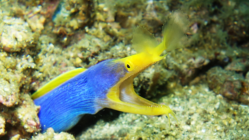 Obwohl es während unseres Aufenthaltes sehr häufig, langanhaltend und stark regnete, war die Sicht immer noch gut und die Tauchgänge meist strömungsfrei. Ausnahme war der Spot „Angel Windows“, an dem es bis in gut 30 m Tiefe richtig zog. Das sorgte dann für einen außergewöhnlich kurzen Tauchgang; normalerweise kam nach ca. 70 Minuten vom Guide das Zeichen zum Auftauchen.