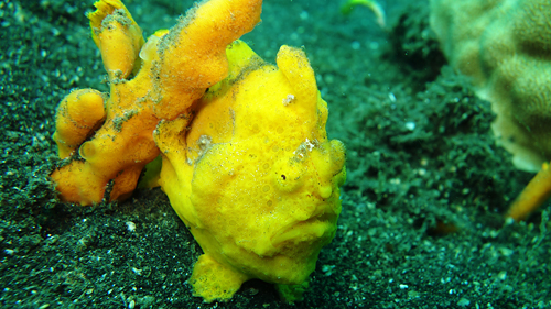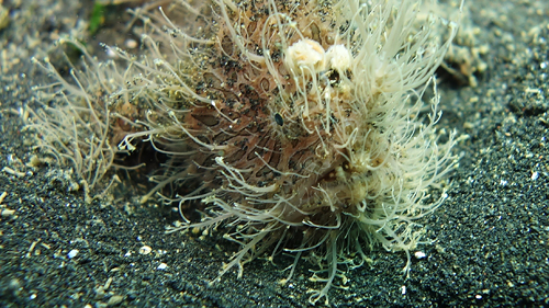 Namen von Spots wie „Critters Hunt“, „Nudis Retreat“, „Magic Rock“ lassen schon im Vorfeld auf tolle Erlebnisse hoffen und wir wurden auch an keinem einzigen Platz enttäuscht. Ob es nun der Hairy Frogfish, der Hairy Shrimps, ein sich häutender Mantis oder auch die sehr kleinen Lembeh-Dragons waren jeder Tauchgang hatte sein spezielles „Etwas“. Auch die Nachttauchgänge und die Mandarinfisch-Tauchgänge sind sehr zu empfehlen; sie finden vom Police Peer aus statt und man fährt schon bei Tageslicht den Platz an und wartet dort auf die Dämmerung. Das ermöglicht gleichzeitig einen Einblick in das abendliche Leben der Dorfbewohner.
