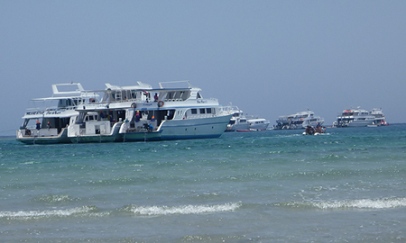 Die Coraya Divers sind keine kleine Basis. 320 Taucher können da gleichzeitig bedient werden. Das kam mir ein bisschen viel vor, aber da die Basis mit zwei Tagesbooten, zwei Halbtagesbooten, sechsmal von zwei Speed-Booten, zweimal von verschiedenen Strandtauchplätzen täglich rausfährt und auch noch ein Hausriff hat ist das nicht so schlimm, wie es klingt.