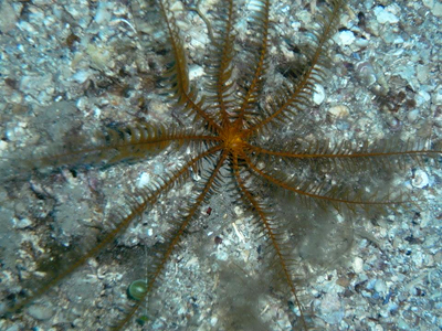 Der Flaschen- und Füllraum war dann wieder über weitere Stufen erreichbar - direkt an der basiseigenen Anlegestelle. Hier konnte man auch Basistauchgänge durchführen. Für die Ausfahrten standen ein Speedboot und 2 Ausflugsboote für Tagestouren zu Verfügung. In der einen Woche, in der ich dort war, wurde kein Tauchspot zweimal angefahren - Miki und sein Team brachten uns zu wunderschönen Tauchgebieten. Es gab auch jedes Mal ein ausführliches Briefing - auch mit dem leisen Hinweis - sich im Bereich des Sporttauchens zu bewegen. Steilwände, Gorgonien, Seesterne in allen Variationen ... tolle Sicht und nicht wirklich schwer zu tauchen. Somit auch für Neulinge in erfahrener Begleitung machbar. Die Touren wurden nicht geguidet.