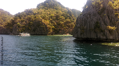 Rund um die Bucht von Coron erheben sich mehr oder weniger sanfte Hügel und bilden eine wunderbar exotische Kulisse, dazu gehört auch Coron Island. Wer Coron Island vom Boot aus betrachtet, wird nicht glauben, dass sich bereits nach einem kurzen Treppenaufstieg vom Ufer aus ein Talkessel öffnet, in dem ein paradiesischer grünblauer See glitzert. Der Aufstieg hat nicht mehr als 15 Stufen, ist daher auch mit Tauchjacket und –Flasche bewältigbar, allerdings sind die hölzernen Tritte recht roh und rutschig und man muss unbedingt aufpassen, um nicht auszugleiten.