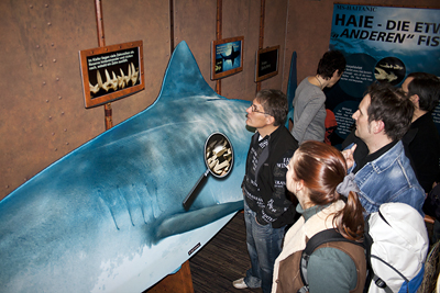 Der Ausstellung „Haitanic“ liegt die Idee zu Grunde, die ganze Welt der Haie komprimiert auf 100 m2 zu präsentieren. Einem verrosteten Wrack nachempfunden, wird in verschiedenen Abteilungen an Hand von Modellen, Filmen und 3D-Animationen über diese, für das ökologische Gleichgewicht der Meere so wichtigen Tiere informiert.