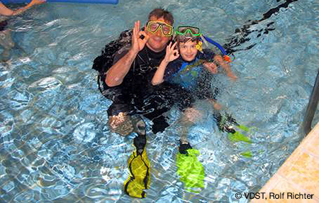 „Das hat richtig Spaß gemacht – das war toll!“, kam es hellauf begeistert von Irene, als sie von ihrem ersten Schnuppertauchgang zurück ist. Irene ist 75 Jahre alt und war am Wochenende einer von bundesweit rund 6.500 Gästen des diesjährigen Tauchertages des Verbandes Deutscher Sporttaucher (VDST). Dabei machte der VDST gemeinsam mit seinen Tauchsportvereinen in ganz Deutschland das Sporttauchen mit den vielfältigen Erlebnismöglichkeiten auch für jene zugänglich, die noch nie Tauchen waren, es aber "schon immer mal" probieren wollten. So auch für Irene, die in ihrem Heimatort Bad Breisig den Tauchverein besuchte. Insgesamt boten über 100 engagierte VDST-Tauchsportvereine am Wochenende besondere Mitmachaktionen an. Trotz des durchwachsenen Wetters begeisterte der Tauchertag 2015 rund 6.500 Teilnehmer im ganzen Bundesgebiet.