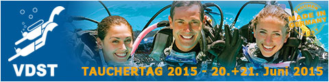 „Deutschland taucht was! VDST-Vereine laden zum Tauchen ein. Mach mit!“, lautet das Motto des vierten bundesweiten Tauchertages, den der Verband Deutscher Sporttaucher (VDST) auch in diesem Jahr gemeinsam mit seinen Tauchsportvereinen veranstaltet. Mit mehr als 7.000 Besuchern in über 100 VDST-Vereinen in ganz Deutschland war der letzte Tauchertag ein voller Erfolg. Auch in diesem Jahr lädt die VDST-Familie alle Interessierten persönlich ein: Jeder der schon immer einmal die Welt unter Wasser erleben und die Schwerelosigkeit beim Tauchen selbst ausprobieren wollte, kommt am 20. und 21. Juni 2015 voll auf seine Kosten. Von den Tauchsportvereinen werden zahlreiche Aktivitäten und ein spannendes Begleitprogramm rund um den Tauchsport angeboten.