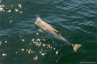 Schweinswale sind sehr scheu und schwer zu beobachten. Meist ist nur kurz ein Teil des< Rückens und die Rückenflosse zu sehen, bevor die Tiere wieder unter der Wasseroberfläche verschwinden. Die aktuellen Aufnahmen zeigen jedoch, wie der weiße Schweinswal neugierig mit dem Schiff schwimmt. Begleitet wird er von einem normal gefärbten Artgenossen. Die Neugier kann den kleinen Zahnwalen jedoch schnell zum Verhängnis werden: im Sommer 2013 wurde ein weißer Schweinwal tot an der Ostsee angespült, womöglich geriet er in eine Schiffsschraube. Schiffe können eine große Gefahr für Wale und Delfine darstellen. WDC ruft deshalb alle Bootsfahrer und Segler zu einem verantwortungsvollen Verhalten in Gegenwart von Walen und Delfinen auf.